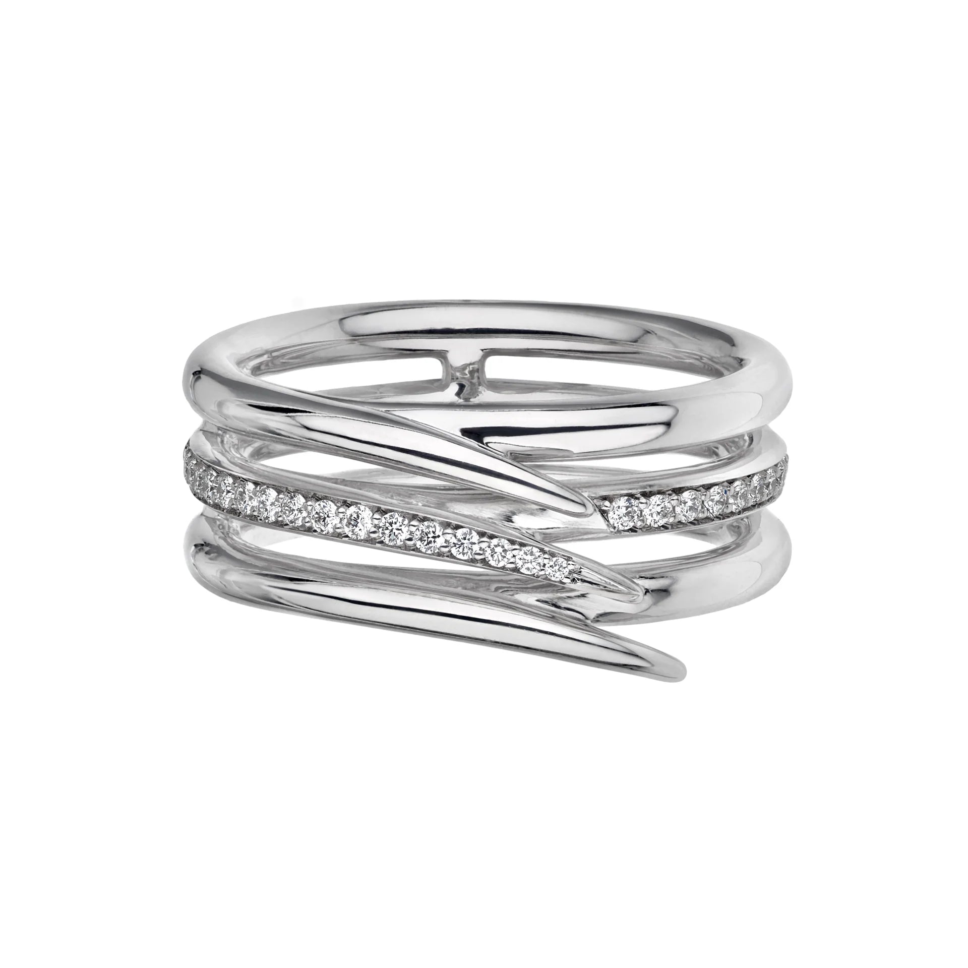 Armis Single Row Ring is crafted from 18ct white gold and 0.20cts of brilliant white diamonds, a classic piece by the House of Shaun Leane. Designed to be worn with other interlocking Armis rings, a single row of diamond pavé encloses the finger. Our milestone rings are timeless, precious, iconic - pieces you will never want to be seen without.