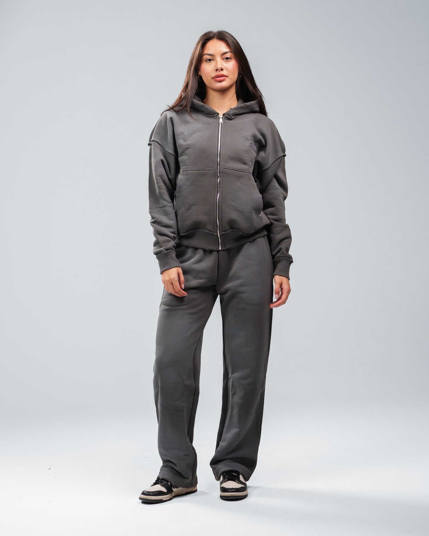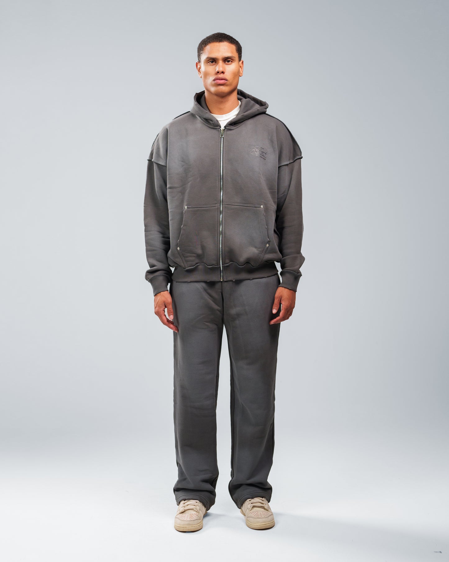 CHARCOAL GREY STONE WASHED DISTRESSED ZIP UP