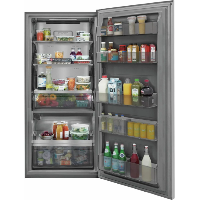 The Frigidaire Professional Smudge-Proof® Stainless Steel Single-Door Refrigerator Offers Show-Stopping Professional Design And Uniform Temperature Control With The Eventemp™ Cooling System And The Ability To Easily Fit Up To 7 Bags Of Groceries. Help Prevent Produce From Spoiling With Advanced Crispseal® Plus Crispers With Auto Humidity Technology, Which Automatically Removes Excess Moisture. An Added Ethylene Adsorber Reduces The Gas Emitted By Many Fruits And Vegetables That Causes Spoiling.