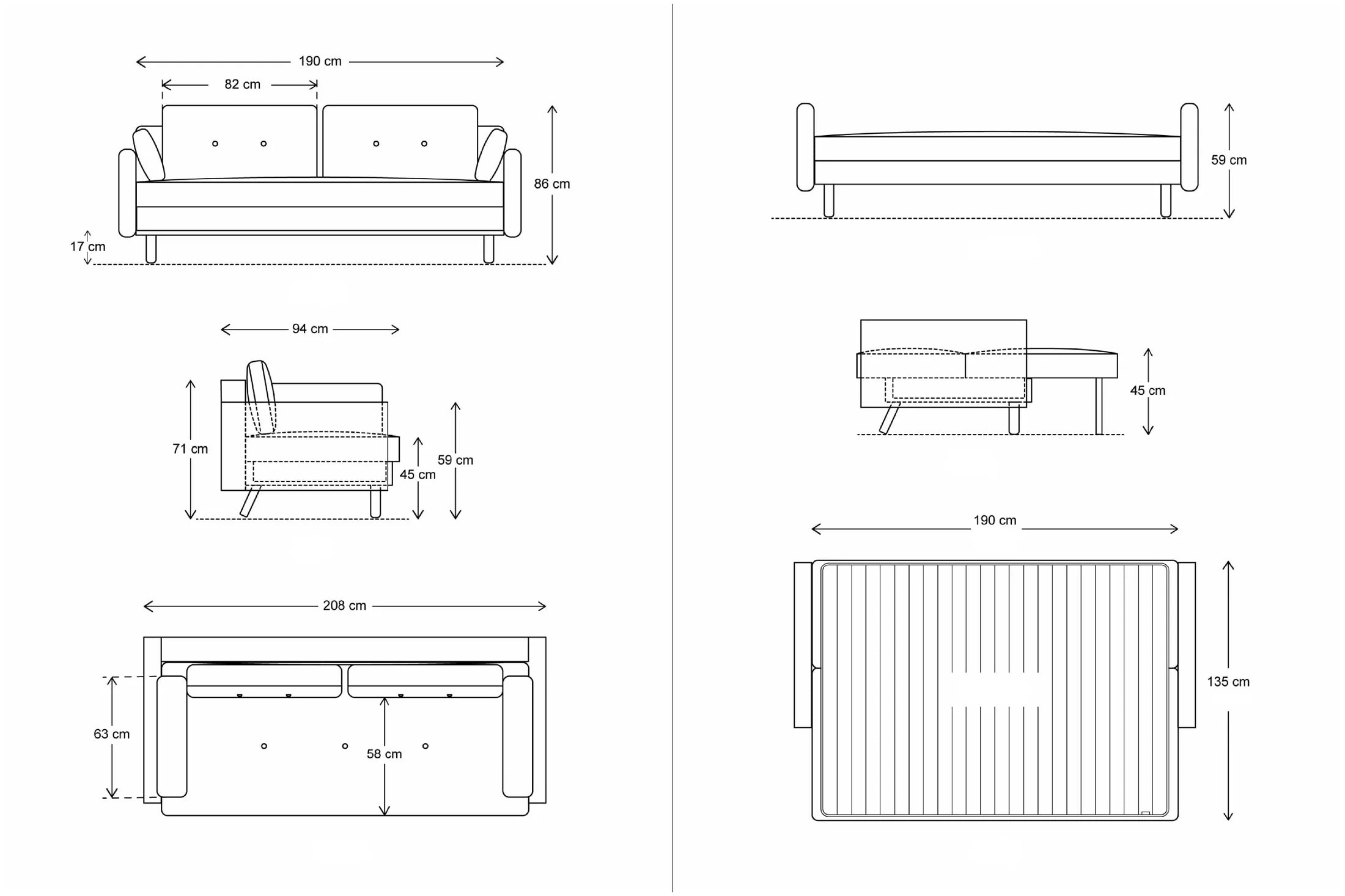 The Model 04 is a 3-seater sofa that folds out into a UK double-sized bed. It's a sofa bed that comes with foam cushioning and a 300-pocket sprung mattress.