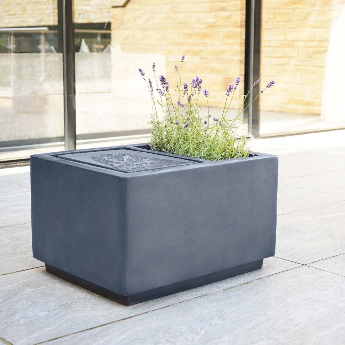 Outdoor Contemporary LED Cube Waterfeature with Planter Cement