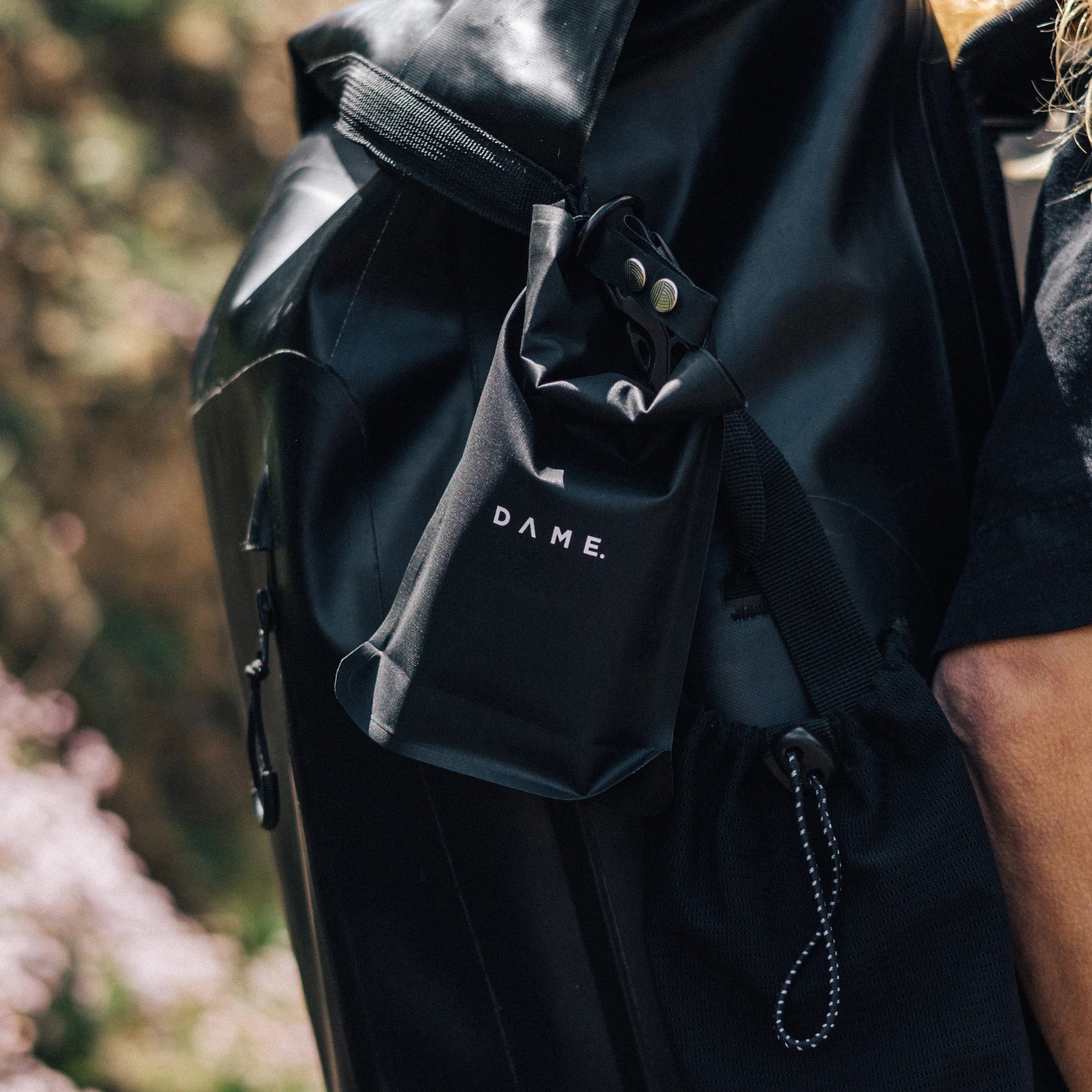 If you are out and about, simply fold each end of the pad inwards and clip the wings over the top - it should look a bit like a little envelope. Pop the folded pad in our waterproof DAME Dry Bag (included in the Reusable Pad Set or to purchase separately). This bag is odour tight so there's no risk of leaking or smells coming from your bag while you're still out.