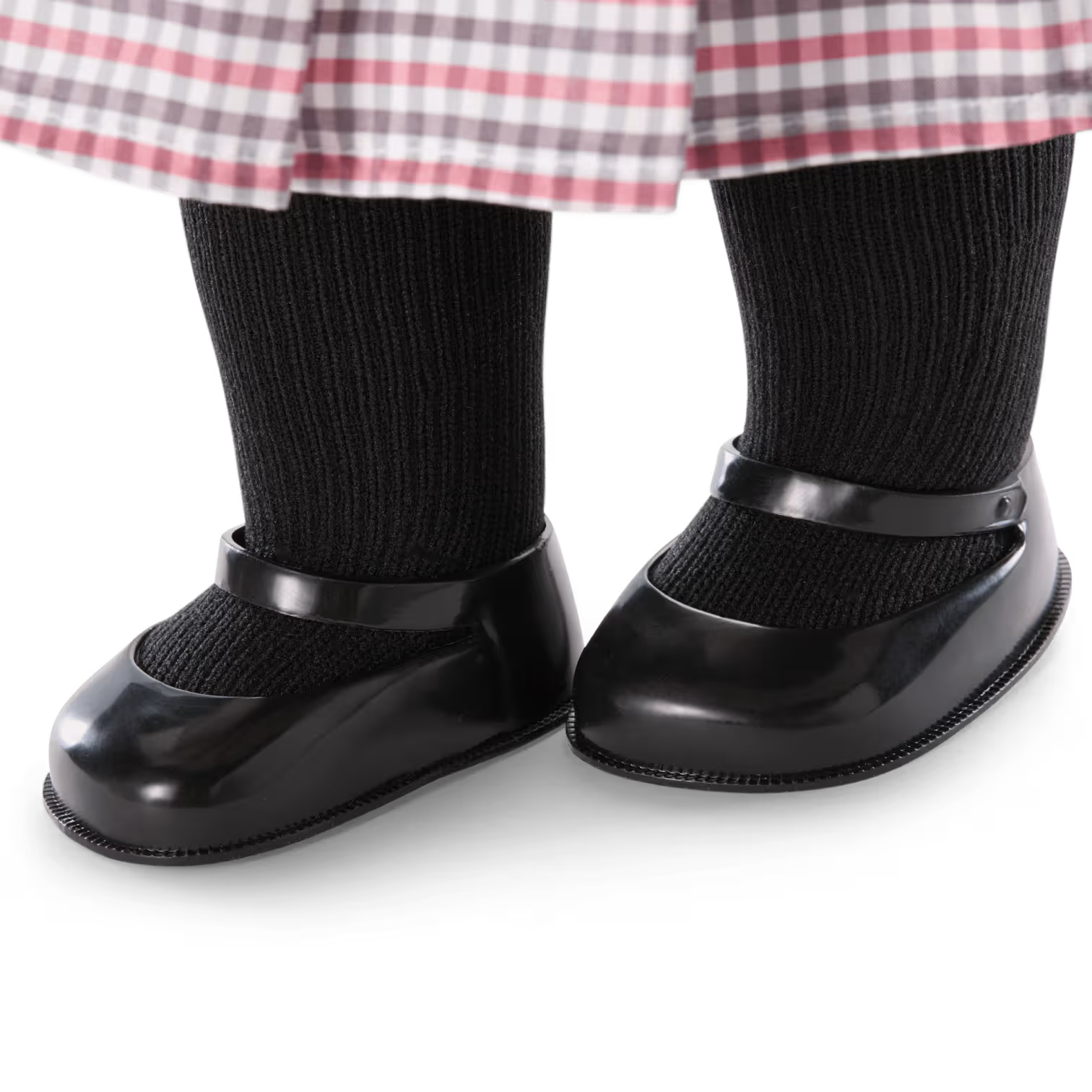 - A pair of white cotton bloomers with an elastic waist, a pair of black knit ribbed tights, and a pair of black Mary Jane shoes