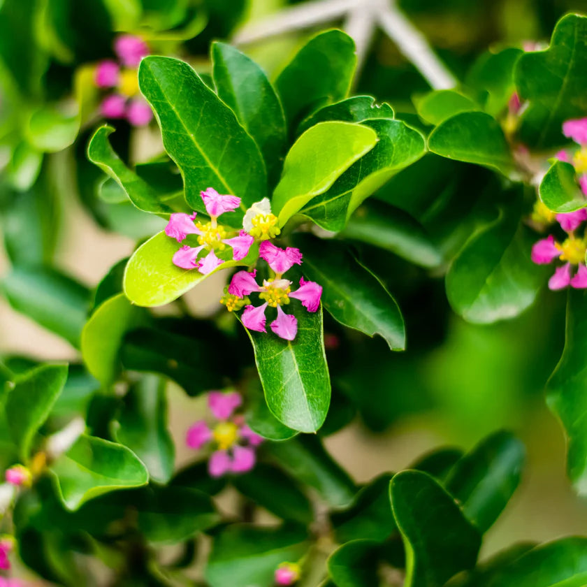 With the right care, this tree will reward you with glossy green foliage, pink flowers, and tart-sweet fruit multiple times a year.