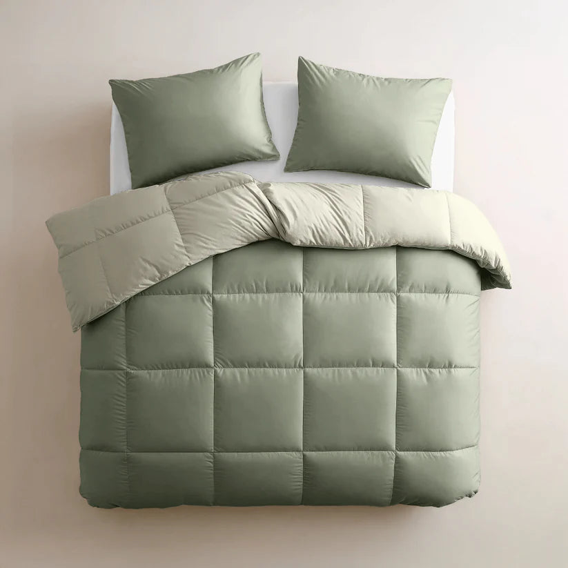 Het meest luxe wasbare dekbed ooit. Ervaar het comfort van de eco-dons vulling en de hoogwaardige tijk van 100% percal katoen. Perfect voor een 5-sterren slaapervaring.
